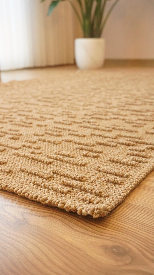 Jute Rug - Woven, Machine Washable & Non-Slip Carpet - Natural, Brown & Embossed