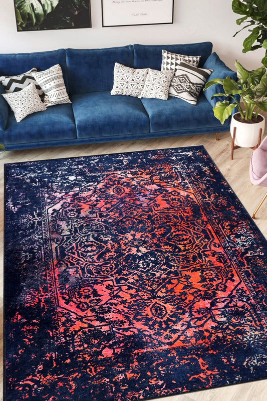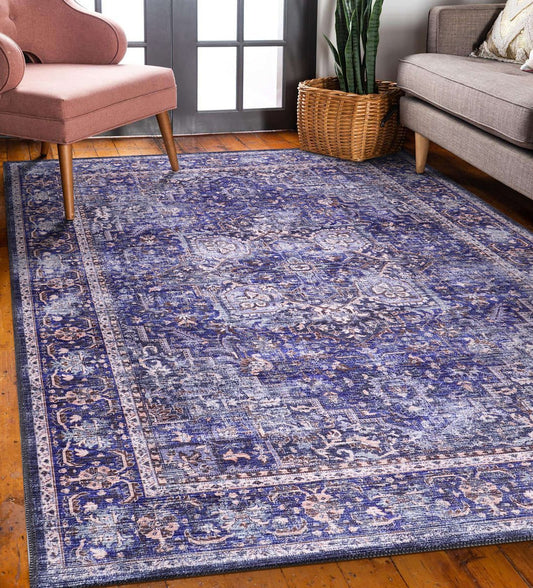 Washable Rug | Non Slip | Vintage | Blue