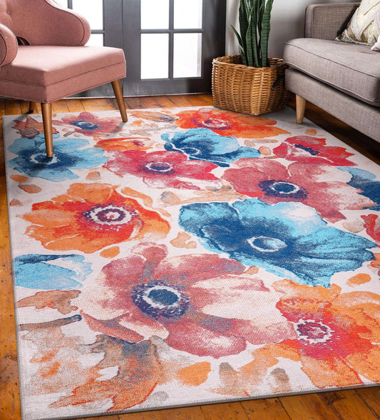 Washable Rug | Non Slip | Floral | Colorful