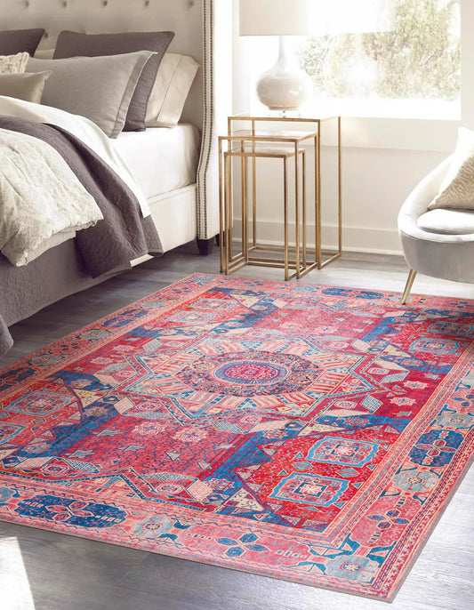Washable Rug | Non Slip | Bohemian | Blue&Red