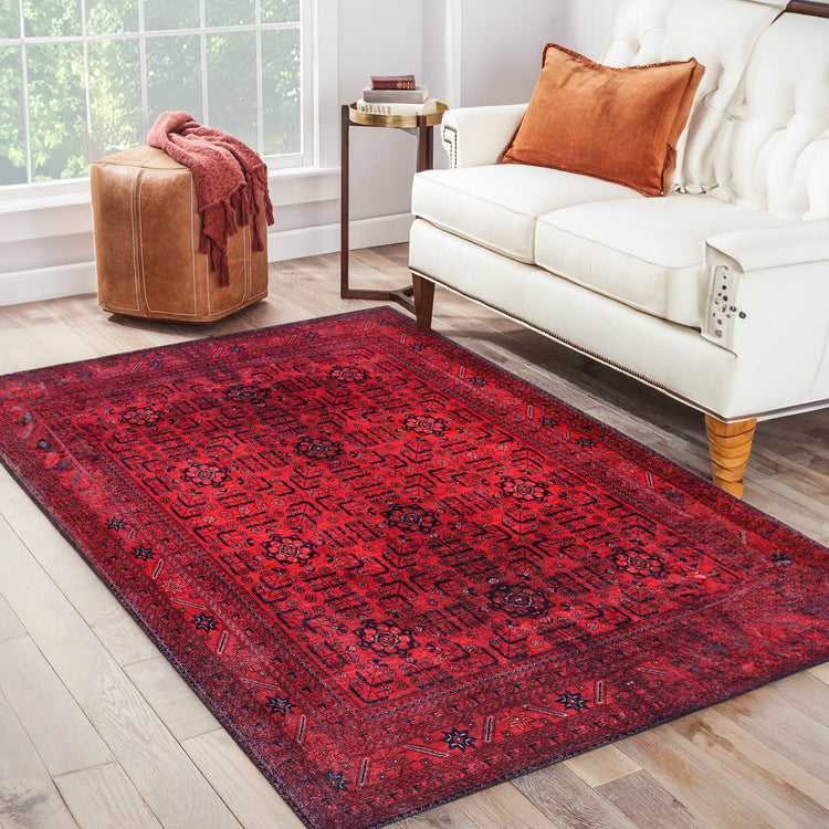 Red Washable Rug, Non-Slip, Low Pile | Vintage Boho Oriental Carpet